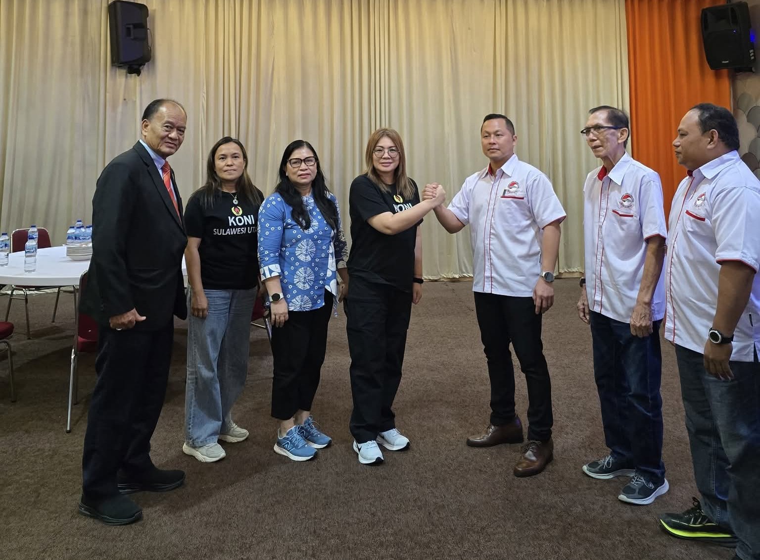 Pelantikan ini turut disaksikan Sekretaris KONI Sulut, Magdalena Wullur, serta perwakilan Pangdam XIII/Merdeka dan Danlantamal VII Manado.